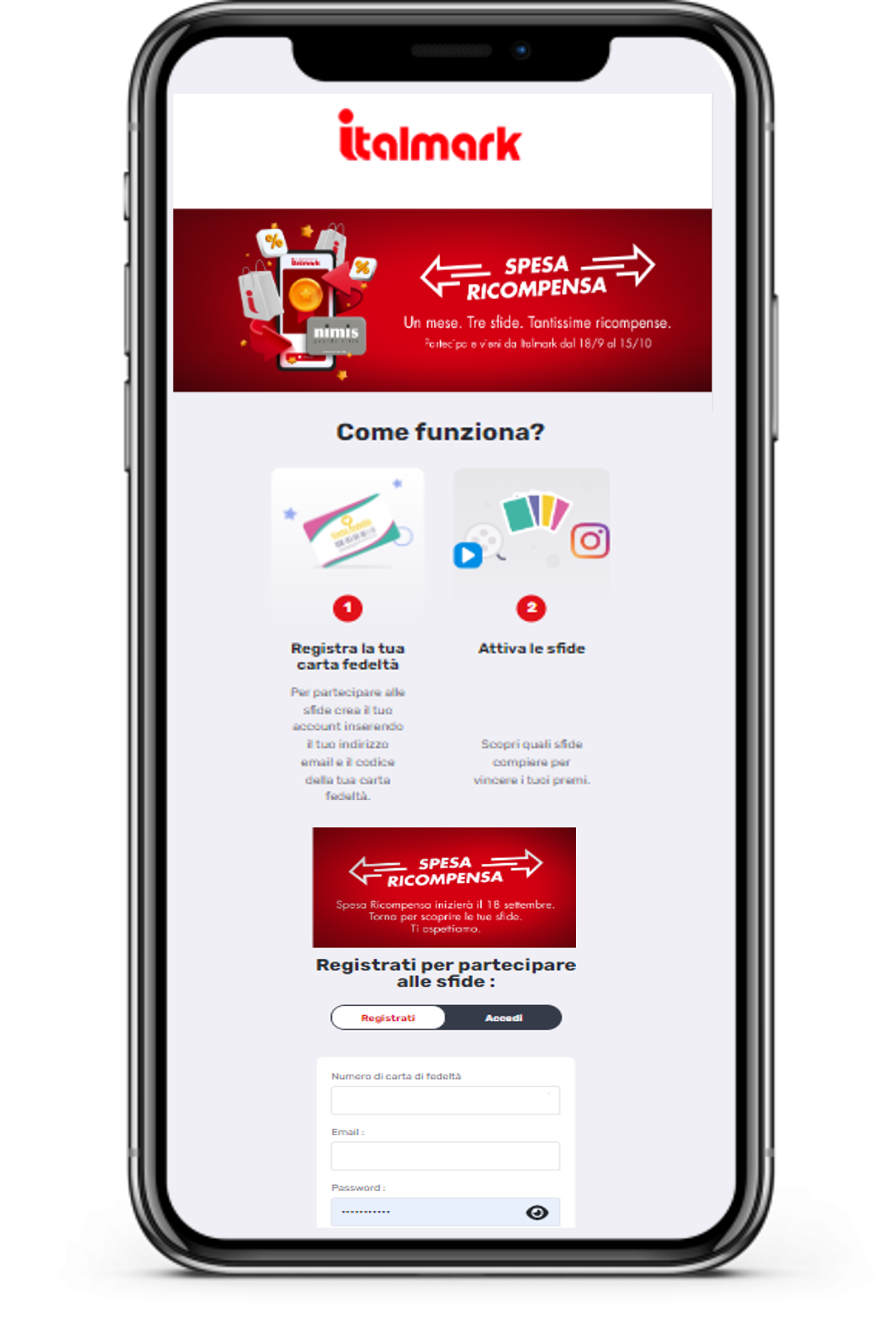 Il cliente si collega ad una landing page dedicata, inserisce e-mail e carta fedeltà e partecipa alle sfide personalizzate